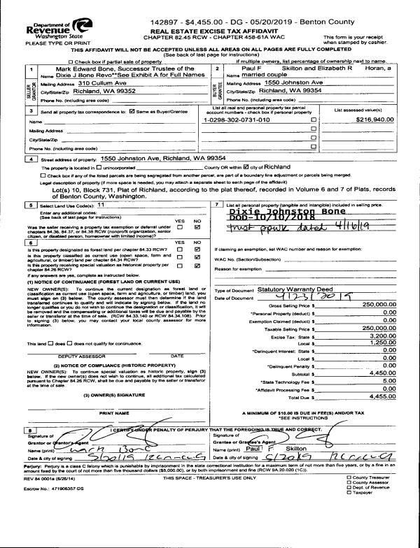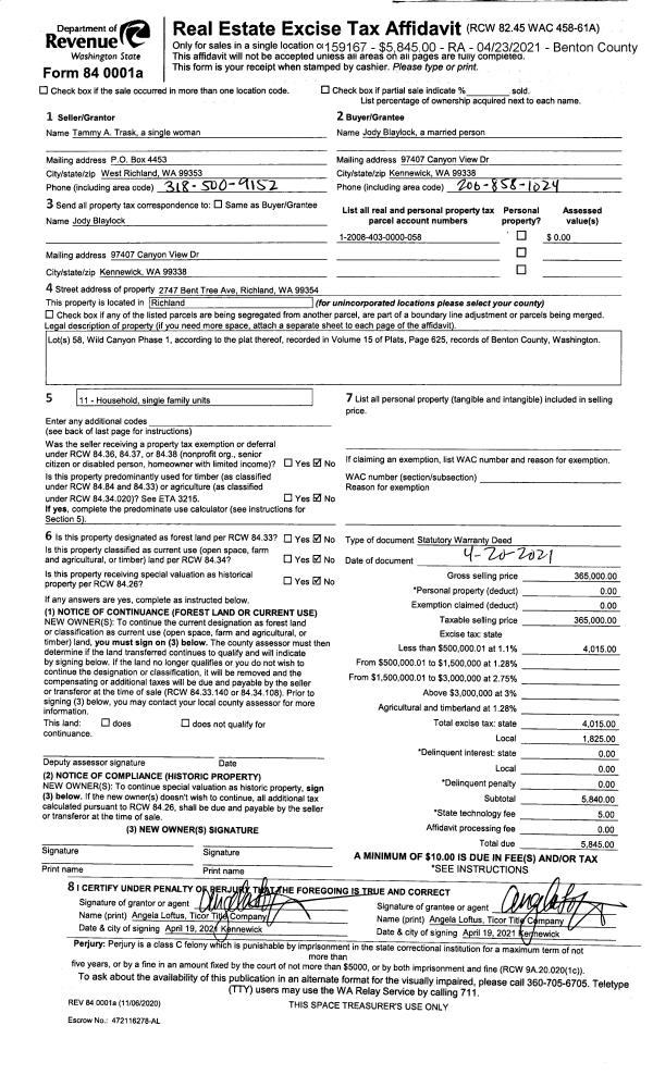 | 1 | 05/07/2021 | SWD | Statutory Warranty Deed | HAGEN ALEXANDER R & JUSTINE R | YOUNGBLOOD JESSE & JACQUELINE | 2021-023662 | | $435,000.00 | 159844 | |