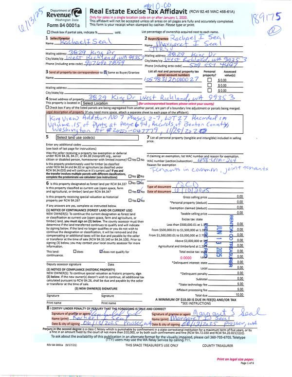 | 1 | 06/10/2025 | QCD | Quit Claim Deed | SEAL RACHAEL | SEAL RACHAEL I & SEAL MARGARET I | 2025-013410 | | $0.00 | 189175 | |