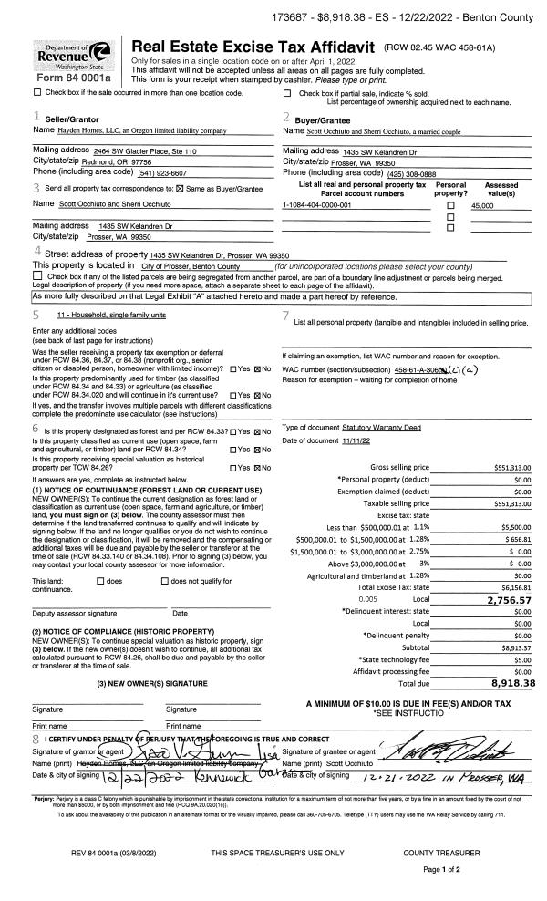 PROSSER, WA 99350 | BELLA VISTA PHASE 2, LOT 13. RECORDED IN VOLUME 15 OF PLATS AT PAGE 733, RECORDS OF BENTON COUNTY, WASHINGTON. AF#2022-011327, 04/01/2022 |