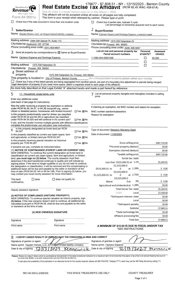 PROSSER, WA 99350 | BELLA VISTA PHASE 2, LOT 43. RECORDED IN VOLUME 15 OF PLATS AT PAGE 733, RECORDS OF BENTON COUNTY, WASHINGTON. AF#2022-011327, 04/01/2022 |