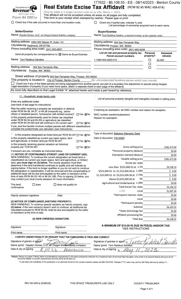 PROSSER, WA 99350 | BELLA VISTA PHASE 2, LOT 18. RECORDED IN VOLUME 15 OF PLATS AT PAGE 733, RECORDS OF BENTON COUNTY, WASHINGTON. AF#2022-011327, 04/01/2022 |