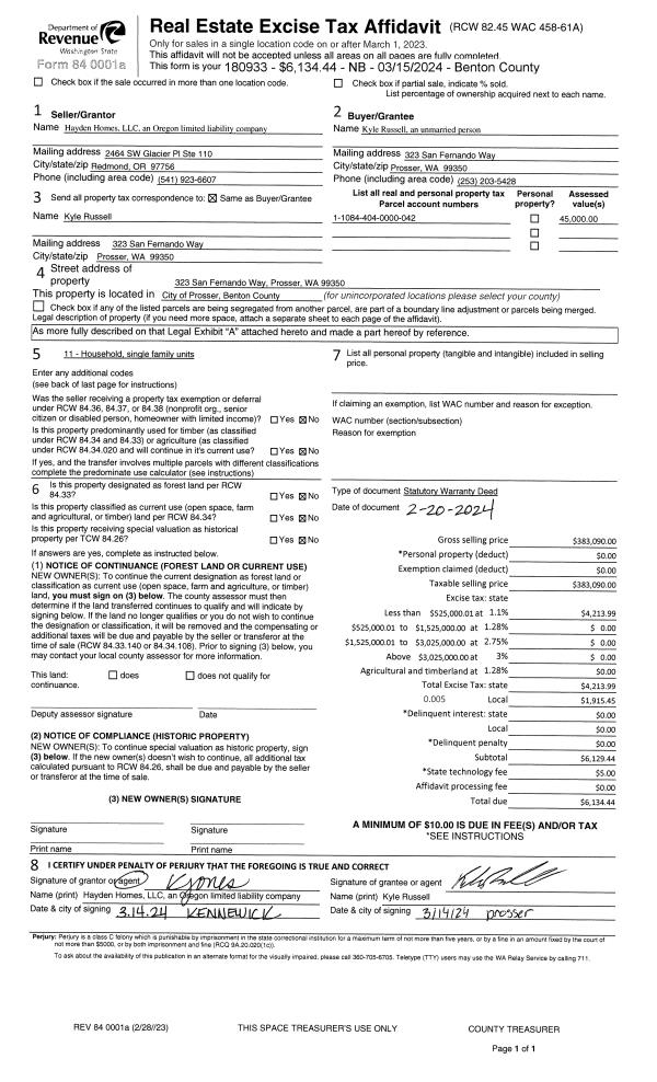 PROSSER, WA 99350 | BELLA VISTA PHASE 2, LOT 43. RECORDED IN VOLUME 15 OF PLATS AT PAGE 733, RECORDS OF BENTON COUNTY, WASHINGTON. AF#2022-011327, 04/01/2022 |