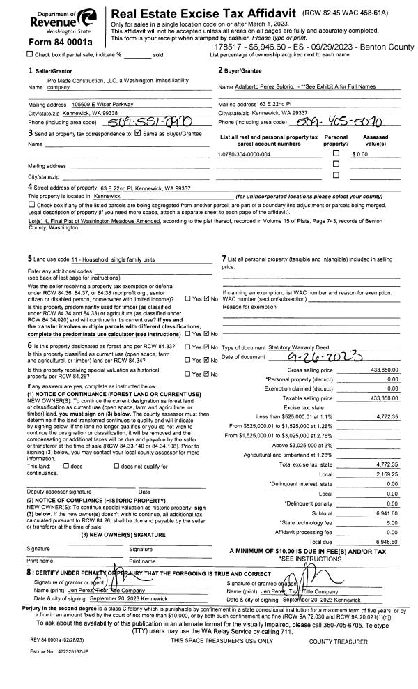 KENNEWICK, WA 99337 | WASHINGTON MEADOWS AMENDED, LOT 9. RECORDED IN VOLUME 15 OF PLATS AT PAGE 743, RECORDS OF BENTON COUNTY, WASHINGTON. AF#2022-021221, 06/24/2022 |
