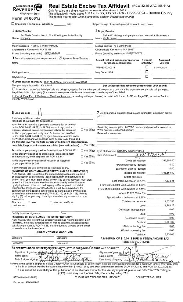 KENNEWICK, WA 99337 | WASHINGTON MEADOWS AMENDED, LOT 4. RECORDED IN VOLUME 15 OF PLATS AT PAGE 743, RECORDS OF BENTON COUNTY, WASHINGTON. AF#2022-021221, 06/24/2022 |