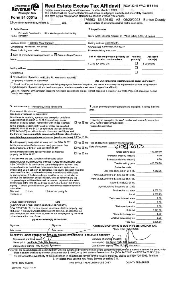 KENNEWICK, WA 99337 | WASHINGTON MEADOWS AMENDED, LOT 11. RECORDED IN VOLUME 15 OF PLATS AT PAGE 743, RECORDS OF BENTON COUNTY, WASHINGTON. AF#2022-021221, 06/24/2022 |