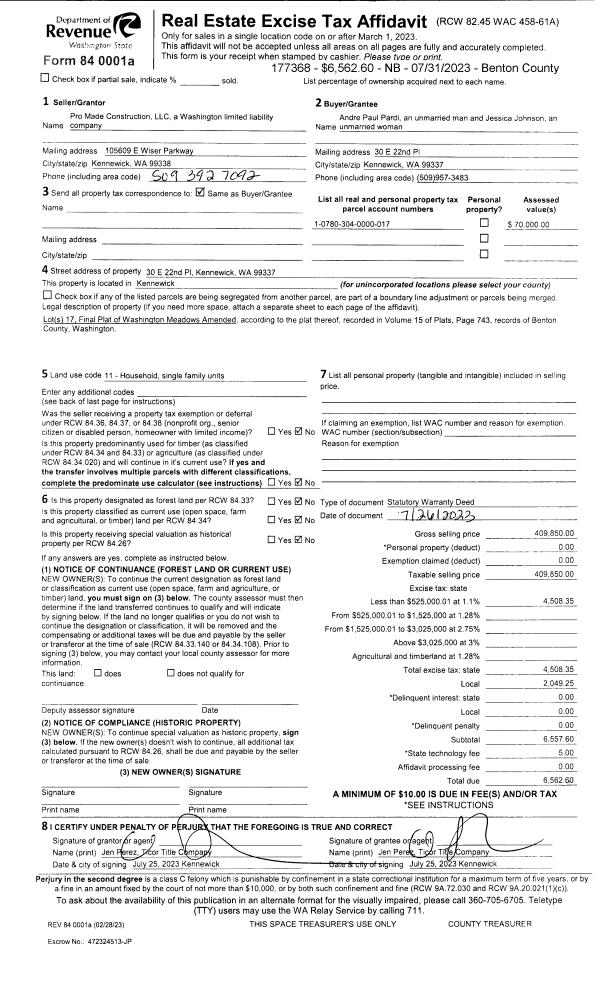 KENNEWICK, WA 99337 | WASHINGTON MEADOWS AMENDED, LOT 11. RECORDED IN VOLUME 15 OF PLATS AT PAGE 743, RECORDS OF BENTON COUNTY, WASHINGTON. AF#2022-021221, 06/24/2022 |