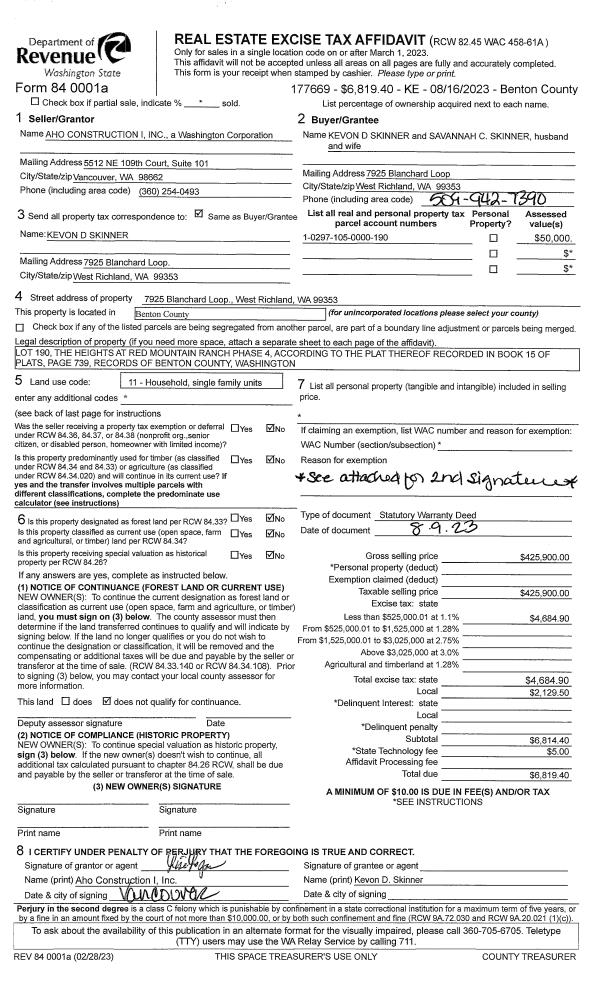 WEST RICHLAND, WA 99353 | THE HEIGHTS AT RED MOUNTAIN RANCH PHASE 4, LOT 223. RECORDED IN VOLUME 15 OF PLATS AT PAGE 739, RECORDS OF BENTON COUNTY, WASHINGTON. AF#2022-016564, 05/17/2022 |