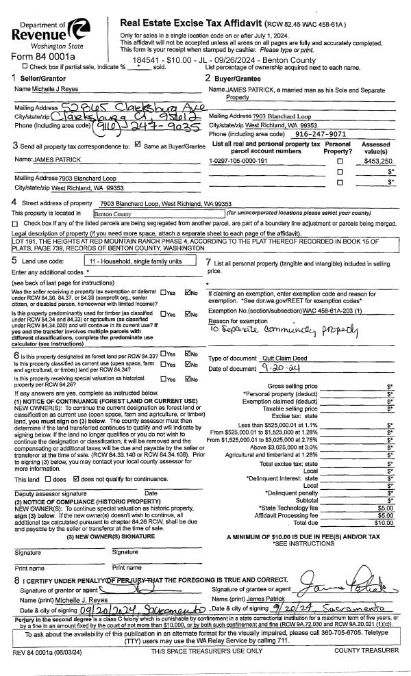 WEST RICHLAND, WA 99353 | THE HEIGHTS AT RED MOUNTAIN RANCH PHASE 4, LOT 199 RECORDED IN VOLUME 15 OF PLATS AT PAGE 739, RECORDS OF BENTON COUNTY, WASHINGTON. AF#2022-016564, 05/17/2022 |