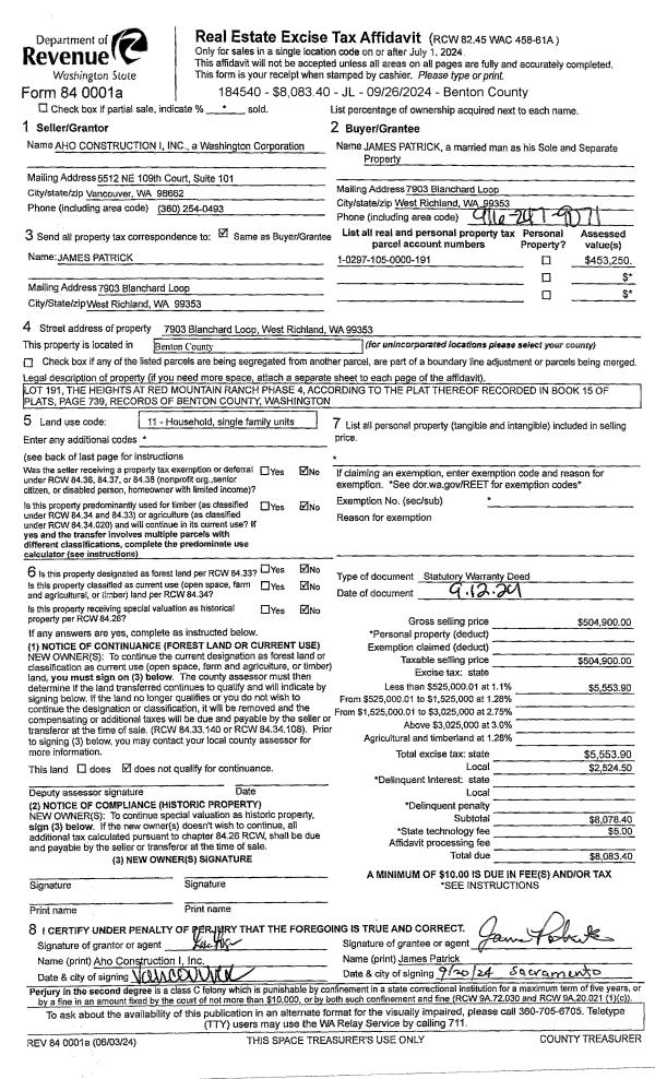 WEST RICHLAND, WA 99353 | THE HEIGHTS AT RED MOUNTAIN RANCH PHASE 4, LOT 187. RECORDED IN VOLUME 15 OF PLATS AT PAGE 739, RECORDS OF BENTON COUNTY, WASHINGTON. AF#2022-016564, 05/17/2022 |