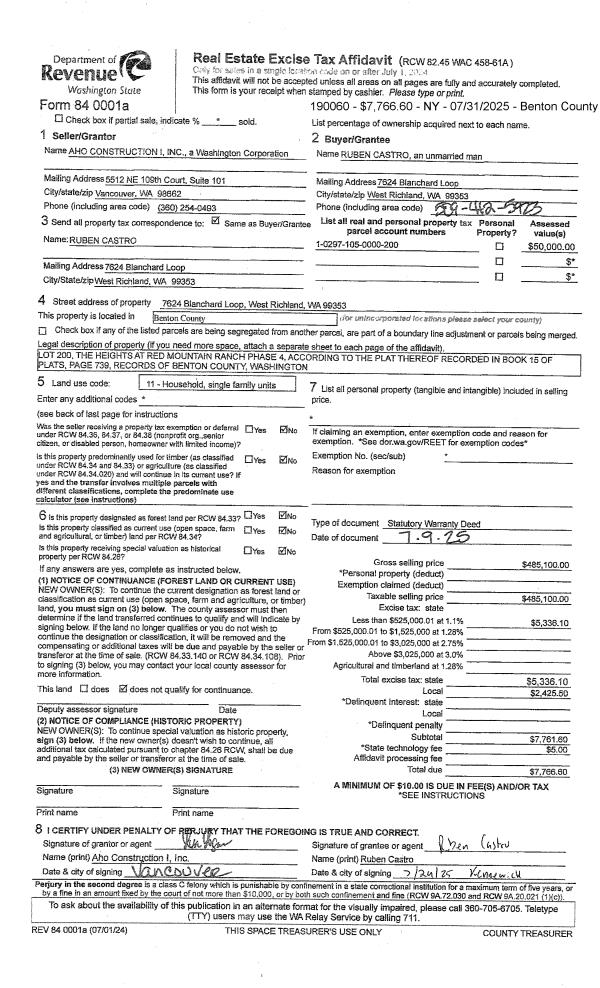 WEST RICHLAND, WA 99353 | THE HEIGHTS AT RED MOUNTAIN RANCH PHASE 4, LOT 199 RECORDED IN VOLUME 15 OF PLATS AT PAGE 739, RECORDS OF BENTON COUNTY, WASHINGTON. AF#2022-016564, 05/17/2022 |
