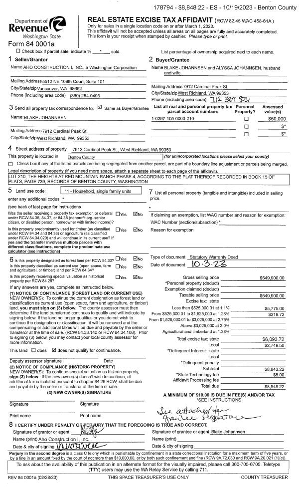 WEST RICHLAND, WA 99353 | THE HEIGHTS AT RED MOUNTAIN RANCH PHASE 4, LOT 223. RECORDED IN VOLUME 15 OF PLATS AT PAGE 739, RECORDS OF BENTON COUNTY, WASHINGTON. AF#2022-016564, 05/17/2022 |