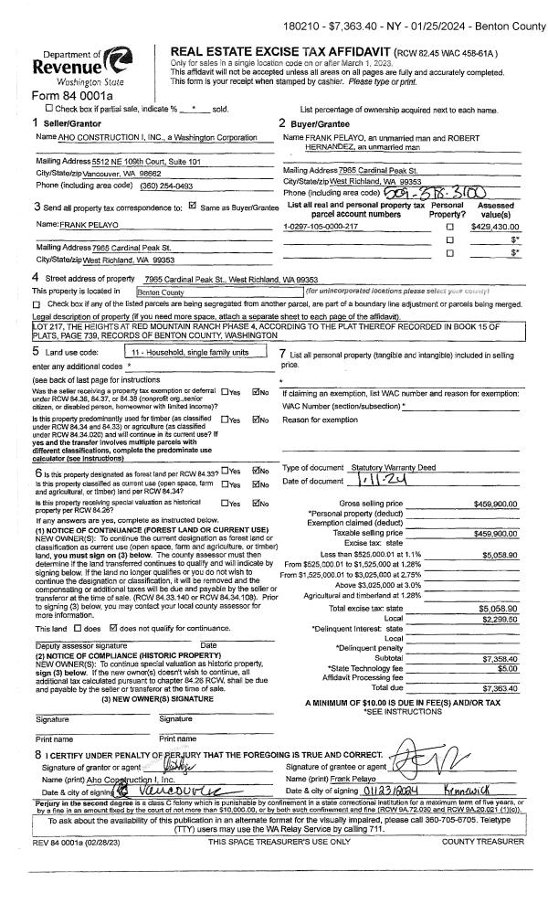 WEST RICHLAND, WA 99353 | THE HEIGHTS AT RED MOUNTAIN RANCH PHASE 4, LOT 218. RECORDED IN VOLUME 15 OF PLATS AT PAGE 739, RECORDS OF BENTON COUNTY, WASHINGTON. AF#2022-016564, 05/17/2022 |