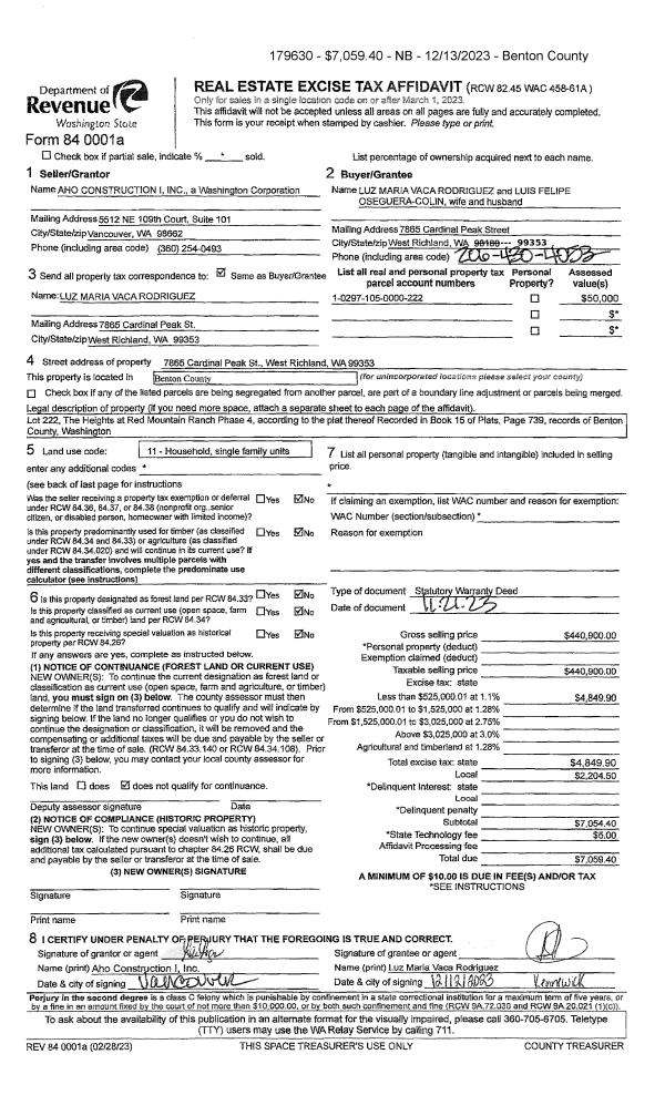 WEST RICHLAND, WA 99353 | THE HEIGHTS AT RED MOUNTAIN RANCH PHASE 4, LOT 223. RECORDED IN VOLUME 15 OF PLATS AT PAGE 739, RECORDS OF BENTON COUNTY, WASHINGTON. AF#2022-016564, 05/17/2022 |