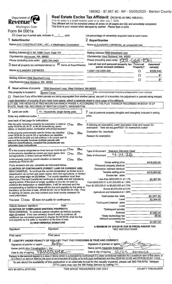 WEST RICHLAND, WA 99353 | THE HEIGHTS AT RED MOUNTAIN RANCH PHASE 4, LOT 234. RECORDED IN VOLUME 15 OF PLATS AT PAGE 739, RECORDS OF BENTON COUNTY, WASHINGTON. AF#2022-016564, 05/17/2022 |