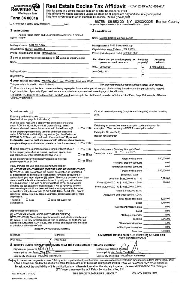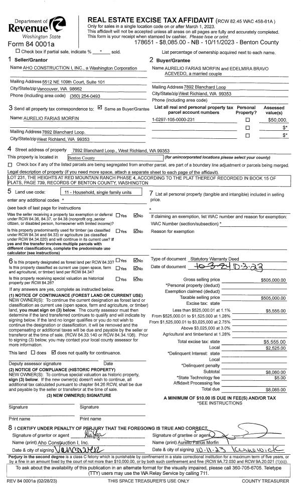 WEST RICHLAND, WA 99353 | THE HEIGHTS AT RED MOUNTAIN RANCH PHASE 4, LOT 234. RECORDED IN VOLUME 15 OF PLATS AT PAGE 739, RECORDS OF BENTON COUNTY, WASHINGTON. AF#2022-016564, 05/17/2022 |