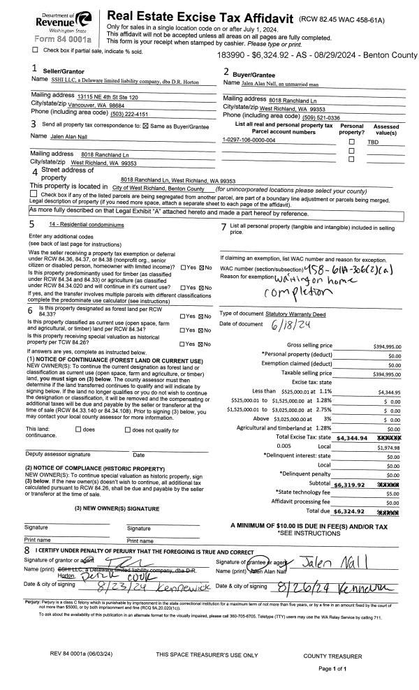 WEST RICHLAND, WA 99353 | RANCHLAND TOWNHOMES PLAT, LOT 24. RECORDED IN VOLUME 15 OF PLATS AT PAGE 744, RECORDS OF BENTON COUNTY, WASHINGTON. AF#2022-022893, 07/08/2022. |
