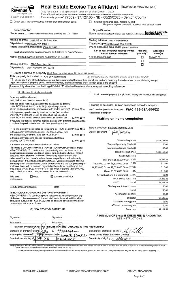 WEST RICHLAND, WA 99353 | RANCHLAND TOWNHOMES PLAT, LOT 23. RECORDED IN VOLUME 15 OF PLATS AT PAGE 744, RECORDS OF BENTON COUNTY, WASHINGTON. AF#2022-022893, 07/08/2022. |