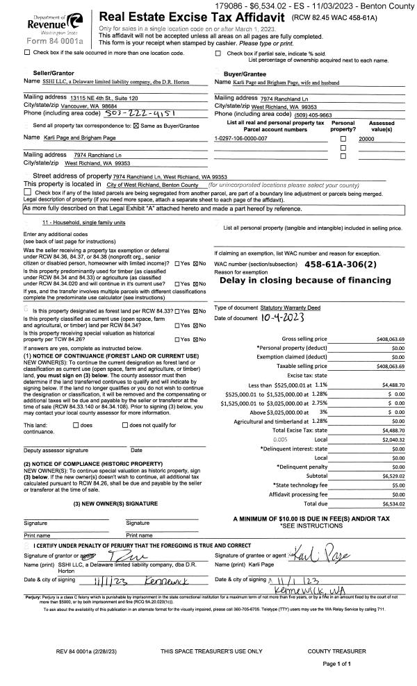 WEST RICHLAND, WA 99353 | RANCHLAND TOWNHOMES PLAT, LOT 34. RECORDED IN VOLUME 15 OF PLATS AT PAGE 744, RECORDS OF BENTON COUNTY, WASHINGTON. AF#2022-022893, 07/08/2022. |