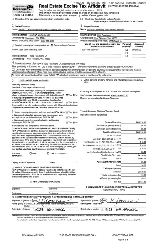 WEST RICHLAND, WA 99353 | RANCHLAND TOWNHOMES PLAT, LOT 20. RECORDED IN VOLUME 15 OF PLATS AT PAGE 744, RECORDS OF BENTON COUNTY, WASHINGTON. AF#2022-022893, 07/08/2022. |