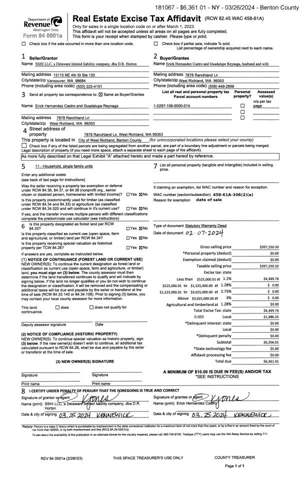WEST RICHLAND, WA 99353 | RANCHLAND TOWNHOMES PLAT, LOT 24. RECORDED IN VOLUME 15 OF PLATS AT PAGE 744, RECORDS OF BENTON COUNTY, WASHINGTON. AF#2022-022893, 07/08/2022. |