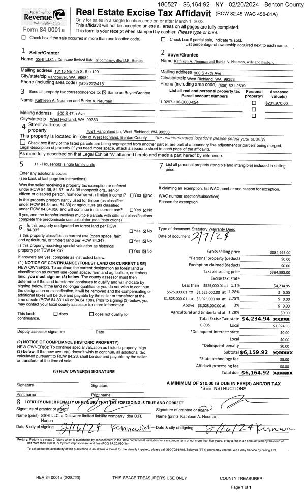 WEST RICHLAND, WA 99353 | RANCHLAND TOWNHOMES PLAT, LOT 6. RECORDED IN VOLUME 15 OF PLATS AT PAGE 744, RECORDS OF BENTON COUNTY, WASHINGTON. AF#2022-022893, 07/08/2022. |