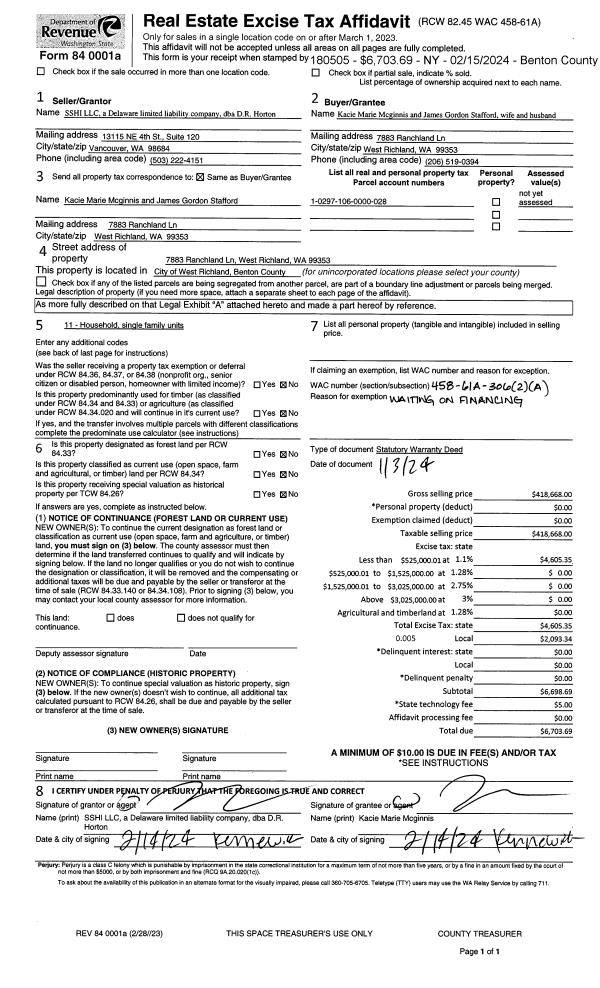WEST RICHLAND, WA 99353 | RANCHLAND TOWNHOMES PLAT, LOT 18. RECORDED IN VOLUME 15 OF PLATS AT PAGE 744, RECORDS OF BENTON COUNTY, WASHINGTON. AF#2022-022893, 07/08/2022. |
