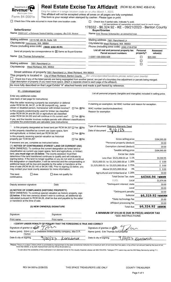 WEST RICHLAND, WA 99353 | RANCHLAND TOWNHOMES PLAT, LOT 20. RECORDED IN VOLUME 15 OF PLATS AT PAGE 744, RECORDS OF BENTON COUNTY, WASHINGTON. AF#2022-022893, 07/08/2022. |