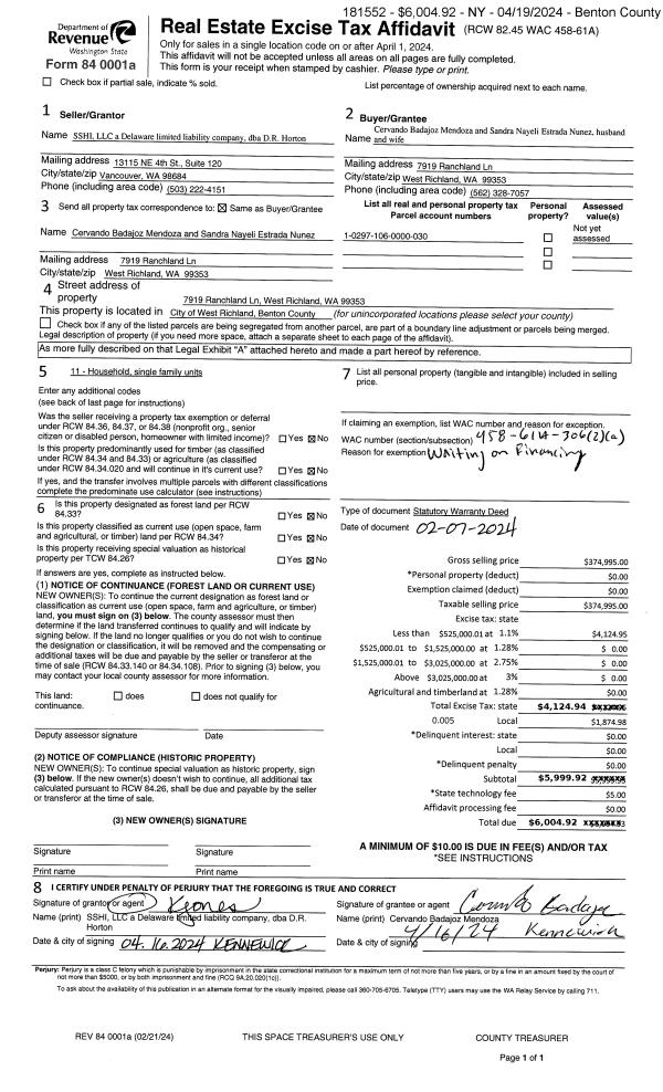WEST RICHLAND, WA 99353 | RANCHLAND TOWNHOMES PLAT, LOT 24. RECORDED IN VOLUME 15 OF PLATS AT PAGE 744, RECORDS OF BENTON COUNTY, WASHINGTON. AF#2022-022893, 07/08/2022. |