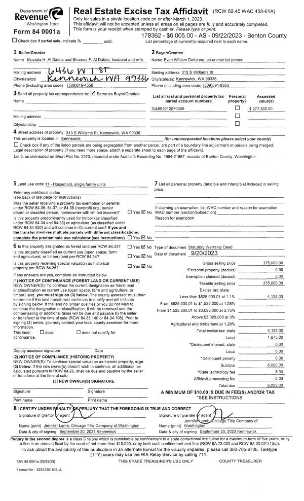 WEST RICHLAND, WA 99353 | RANCHLAND TOWNHOMES PLAT, LOT 6. RECORDED IN VOLUME 15 OF PLATS AT PAGE 744, RECORDS OF BENTON COUNTY, WASHINGTON. AF#2022-022893, 07/08/2022. |