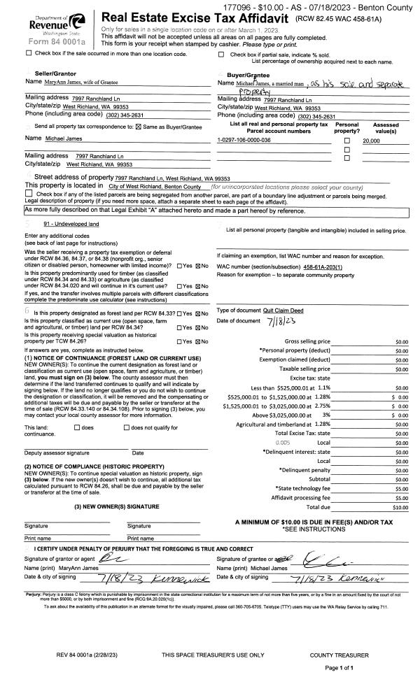 WEST RICHLAND, WA 99353 | RANCHLAND TOWNHOMES PLAT, LOT 1. RECORDED IN VOLUME 15 OF PLATS AT PAGE 744, RECORDS OF BENTON COUNTY, WASHINGTON. AF#2022-022893, 07/08/2022. |