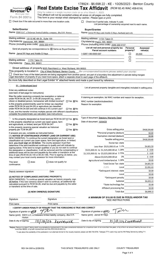 WEST RICHLAND, WA 99353 | RANCHLAND TOWNHOMES PLAT, LOT 20. RECORDED IN VOLUME 15 OF PLATS AT PAGE 744, RECORDS OF BENTON COUNTY, WASHINGTON. AF#2022-022893, 07/08/2022. |