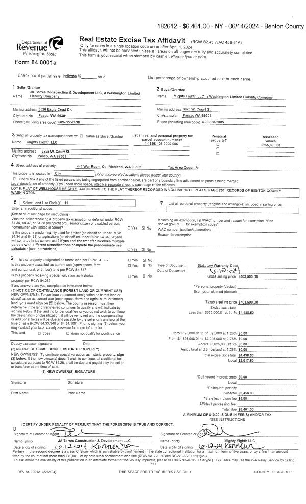 RICHLAND, WA 99352 | WELLHOUSE HEIGHTS, LOT 8. RECORDED IN VOLUME 15 OF PLATS AT PAGE 751, RECORDS OF BENTON COUNTY, WASHINGTON. AF#2022-033615, 10/20/2022. |