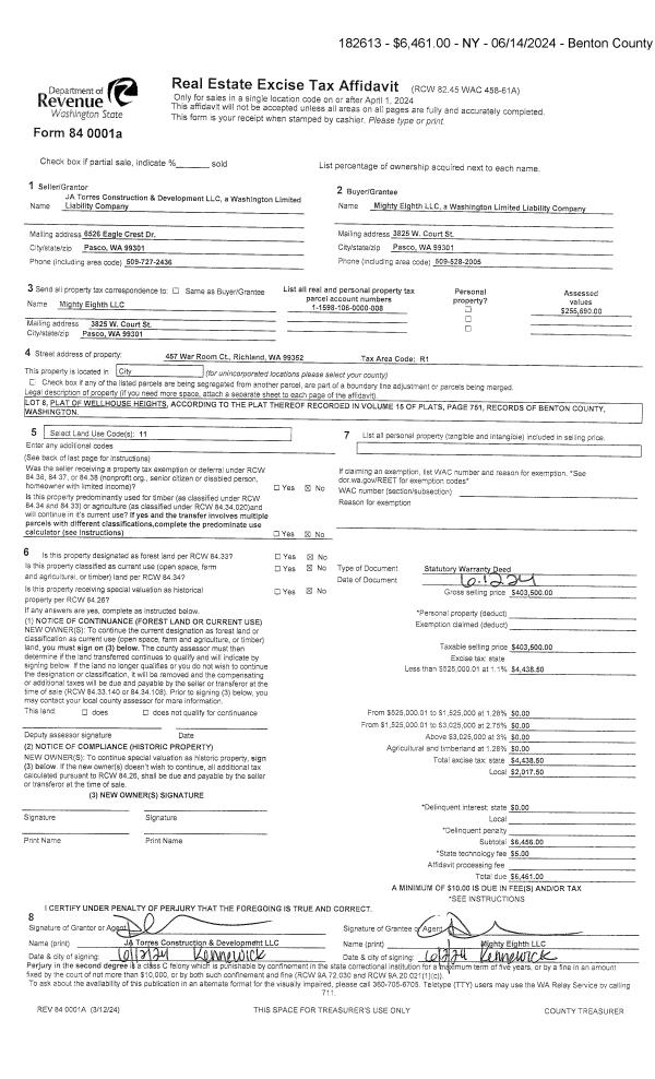 RICHLAND, WA 99352 | WELLHOUSE HEIGHTS, LOT 1. RECORDED IN VOLUME 15 OF PLATS AT PAGE 751, RECORDS OF BENTON COUNTY, WASHINGTON. AF#2022-033615, 10/20/2022. |