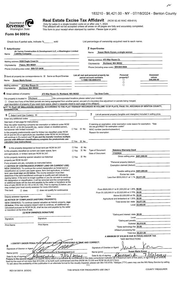 RICHLAND, WA 99352 | WELLHOUSE HEIGHTS, LOT 6. RECORDED IN VOLUME 15 OF PLATS AT PAGE 751, RECORDS OF BENTON COUNTY, WASHINGTON. AF#2022-033615, 10/20/2022. |