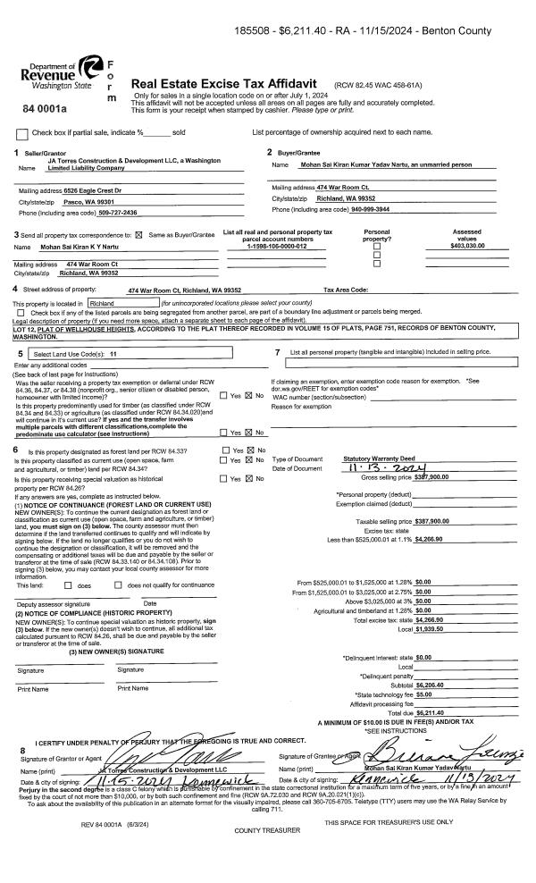RICHLAND, WA 99352 | WELLHOUSE HEIGHTS, LOT 11. RECORDED IN VOLUME 15 OF PLATS AT PAGE 751, RECORDS OF BENTON COUNTY, WASHINGTON. AF#2022-033615, 10/20/2022. |