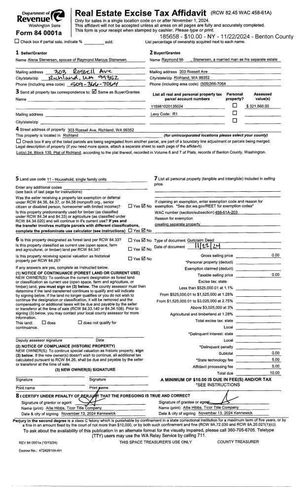 | Mailing Address: | 303 ROSSELL AVE RICHLAND, WA 99352 | % Ownership: | 100.0000000000% |