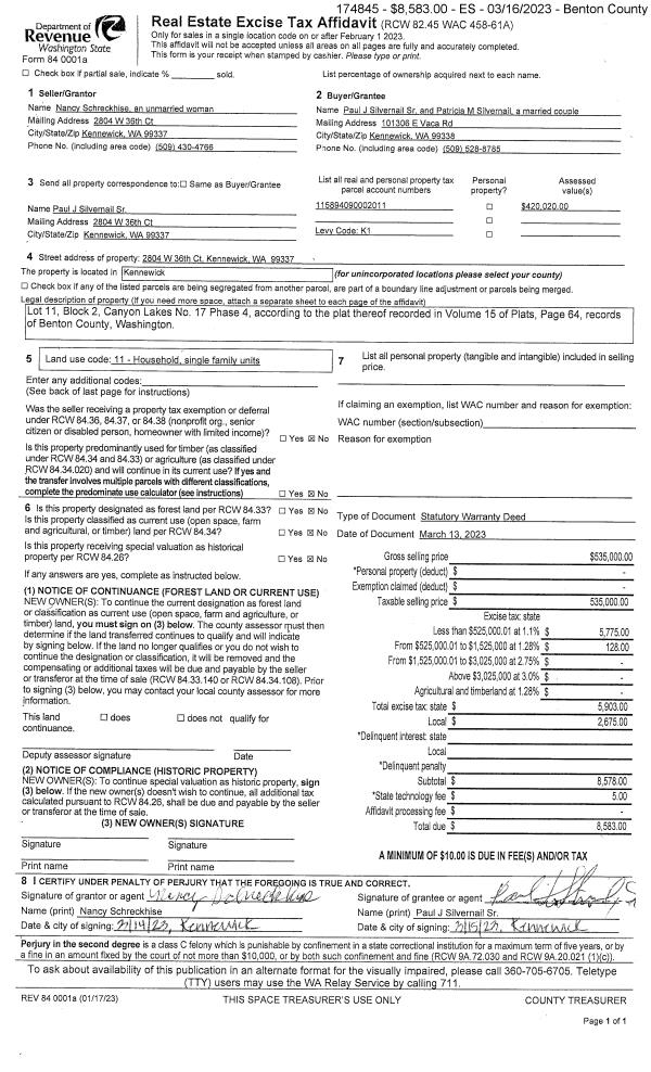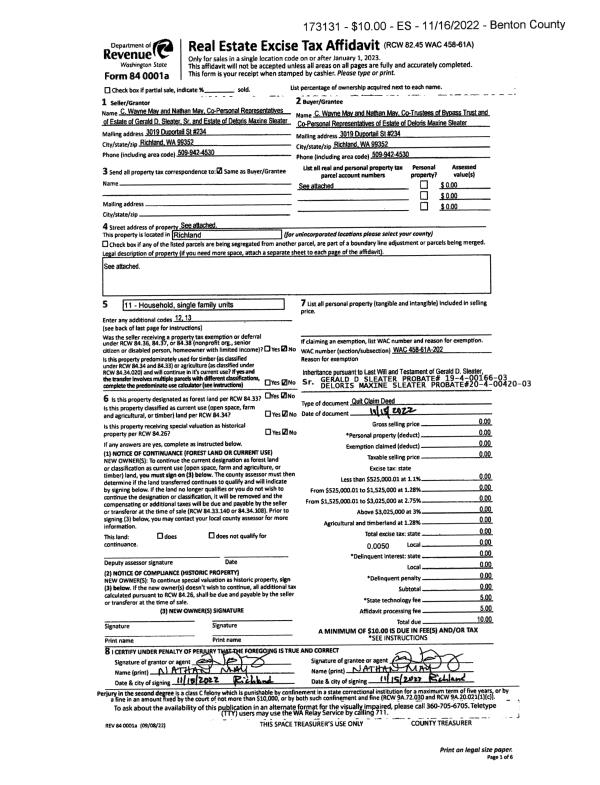 | 2 | 11/15/2022 | QCD | Quit Claim Deed | SLEATER GERALD D & DELORIS M | MAY TRUSTEES C WAYNE & MAY NATHAN | 2022-035776 | | $0.00 | 173131 | |