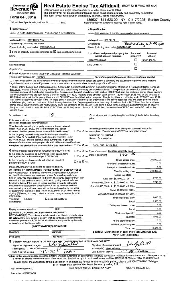 | Mailing Address: | 303 ROSSELL AVE RICHLAND, WA 99352 | % Ownership: | 100.0000000000% |